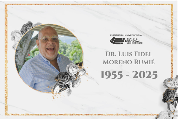La comunidad de la Institución Universitaria Escuela Nacional del Deporte, en cabeza de la rectora Patricia Martínez, lamenta el sensible fallecimiento del doctor Luis Fidel Moreno Rumié. Destacada personalidad del deporte y el periodismo en la ciudad, representante del sector productivo en el Consejo Directivo de la Institución desde el 2004.
