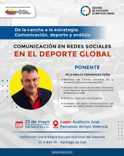 El Dr. Emilio Fernández Peña, director del Centro de Estudios Olímpicos y de Deportes, también del Máster en Gestión de la Comunicación y Patrocinio en Organizaciones Deportivas, y profesor titular de Comunicación en la Universitat Autònoma de Barcelona, recorrió las instalaciones de la Institución Universitaria Escuela Nacional del Deporte (IUEND) y su Centro de Estudios Olímpicos.