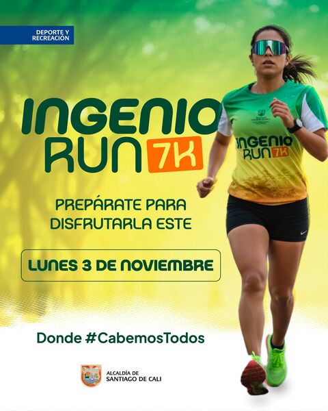 La Carrera Ingenio Run 7K se llevará a cabo el próximo lunes 3 de noviembre de 2025, con salida a las 6:30 a.m. desde el Parque El Ingenio (Cra. 83 con Cl. 14A). Esta iniciativa, organizada por la Institución Universitaria Escuela Nacional del Deporte, en alianza con la Secretaría del Deporte y la Recreación de Santiago de Cali, busca fomentar la actividad física, la salud y la integración comunitaria.